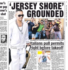 Before they could say ‘Ciao’, the cast of MTV’s “Jersey Shore” was told ‘Arrivederci’ by officials in Florence reports the New York Post this morning. The cast was heading to the airport for a flight to Italy to film the fourth season of their reality series when word came that their permits to film in the city’s famous tourist sites had been yanked. Previously approved, the mayor of Florence suddenly denied to crew permission to film at the Uffizi art gallery, the Boboli Gardens, and the Palazzo Vecchio. The Jersey Shore cast has already been banned from filming scenes in the city’s bars and clubs or anywhere would depict the historic city as a “booze heaven.” Snooki and company returned to New Jersey until the situation could be resolved.