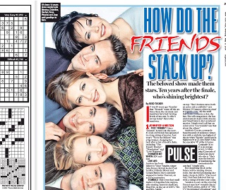 The New York Post gives us a where are they now with the cast of Friends, which went off the air 10 years ago this week. The Post says despite all the tabloid headlines, Jennifer Aniston is clearly doing better than the rest of her castmates in terms of net worth and box office success. In fact, all the ladies are doing better than the guys. David Schwimmer, “always the least popular of the cast” remains the one furthest out of the spotlight.