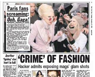 Lady Gaga is in the New York Post this morning, showing a little more than cleavage. The pop star donned a “boob-baring blouse” while stepping out of her Paris hotel yesterday. A massive snowstorm that has blanketed much of Western Europe caused Gaga to postpone her tour for a few night—but it apparently didn’t inspired her to invest in a proper coat.