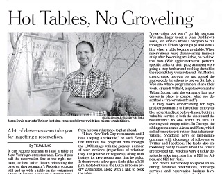The New York Times has some advice for landing a table at a popular restaurant. Waiting until the last minute can pay off - as reservations get cancelled or tables set aside for VIPs and family members get released back into the pool. There are now online services that will scan for open reservations and alert you by text or email when tables pop up. Or you can try grabbing a drink at your desired restaurant, then asking if there is a table available for the following weekend.