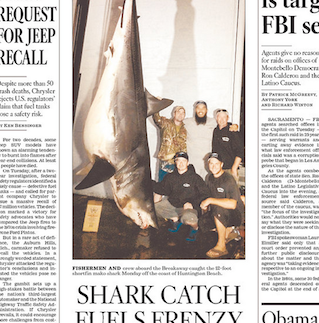Six men in California managed to reel in the largest mako shark ever caught by line, says the LA Times. But the catch, which was filmed as part of a reality show for the Outdoor Channel, has conservationists in a tizzy, who say the men should have reeled in the 1,323.5-pound fish and then released it. Scientists, on the other hand, say they are excited to examine the fish up close, especially since it appears to be pregnant.