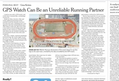 There’s a fantastic illustration in New York Times health section today. Reporter Gina Kolata got a computer science professor to run 5 laps (in the same lane) wearing a GPS watch and then show her the data. The resulting graphic shows just how unreliable the coordinates are. Not only was every loop around the track different—none of them were oval.