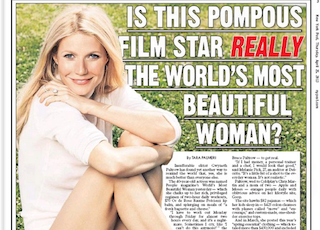 Yesterday, People magazine named Gwyneth Paltrow the year’s “most beautiful woman.” This morning the New York Post reacts incredulously to the news with a biting story about the “insufferable elitist.” The Post takes issue with just about everything in Paltrow’s world, from her lifestyle blog, which is routinely ridiculed for giving out-of-touch advice to the masses to her seemingly obsessive workouts and diets. As one passer by put it: “If I had money, a personal trainer and a chef, I would look that good too.”