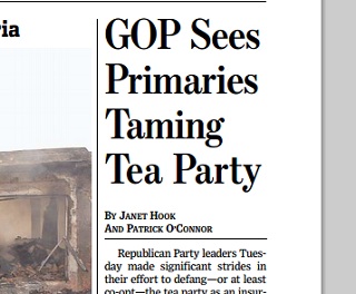 Has the Tea Party finally been tamed? The Wall Street Journal says Republican party officials see yesterday’s solid primary results by traditional Republicans over antiestablishment candidates as evidence the GOP is regaining its power over the Tea Party. But the paper says that doesn’t mean we should expect any shift to the center by the GOP.