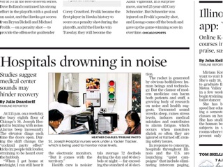 Beep. Beep. Buzz. Ding. Health care is louder than ever these days, says the Chicago Tribune, a situation that could potentially have a negative effect on patients. Sound levels are almost double—72 decibels instead of 40—what recommendations say they should be and a crop of new studies say the extra noise causes stress, disrupts sleep and contributes to medical mistakes and “alarm fatigue.” High-tech machines are partly to blame for the amplified noise levels but so are more basic things, like a hospital’s design: “Porous or fuzzy materials rarely are used to absorb energy or deaden space in health care settings because they can harbor microorganisms.”