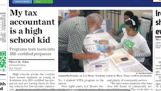 Talk about applicable homework. USA Today says high school students across the country are becoming IRS-certified tax preparers and then using those skills to help low-income folks do their taxes. The program is run through the IRS and has about 77 schools participating. Last year, students landed about $3.8 billion in tax refunds for their clients.