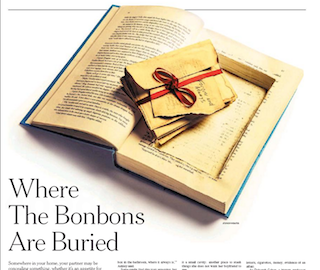 The need to hide certain things is universal, says the New York Times. Whether it’s “old love letters, cigarettes, money, evidence of an affair” or a Valentine’s Day present, chances are your significant other has a secret stash hidden under your nose. If you’re curious about what might be on today’s agenda, favorite places include in books, breaker boxes, behind picture frames, or in that file folder that reads Taxes: 2007.