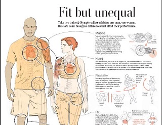 The Washington Post breaks down the physiological differences that affect the performance of male and female athletes. Men have a greater percentage of lean muscle which leads to more power, giving a man the advantage in sprinting, jumping and lifting sports. Women have more flexibility, leading to better performance in sports such as gymnastics and figure skating.