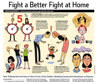 The Wall Street Journal says the old rule of not fighting in front of your children has changed. Studies have found kids who witness constructive marital conflict from their parents end up happier and with better problem solving and coping skills. The Journal offers some tips for fighting in front of your kids: Try to keep arguments to 5 minutes, stop if your child seems distressed and avoid fighting about serious topics in front of your children.