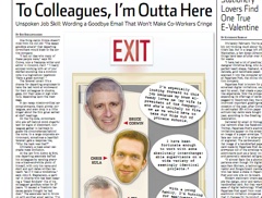 There’s some great advice in the Wall Street Journal this morning to help you leave your job in style, specifically about how to write a goodbye letter that won’t make your colleagues cringe. Or maybe what not to write, would be more apt. Like the guy who sent around a photo of himself with his employment dates as a caption…which several of his colleague mistook for a death notice.