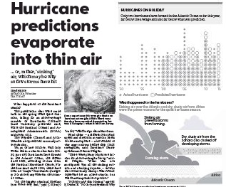Not that anyone is complaining, but we’re in the midst of the slowest hurricane season since 1982. There have been only two Atlantic hurricanes this year - neither of them major storms. USA Today explains the phenomenon. Unusually dry, dusty air from the Sahara Desert along with “sinking air” over the Atlantic combined to suppress hurricane activity.