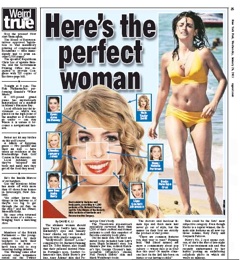 What does the ideal woman look like? According to two Hollywood plastic surgeons, she has “Natalie Portman’s nose, Scarlett Johansson’s lips, Halle Berry’s jaw line, Amy Adams’ skin and Penelope Cruz’s body.” Oh and don’t forget Taylor Swift’s hair, Anne Hathaway’s eyes and January Jones’ cheeks. The surgeons surveyed more than 1200 of their current and former patients to see what body parts were in hot demand. The only problem? When the New York Post actually made a composite photo from all these A-list features, the results turned out to be a little creepy.