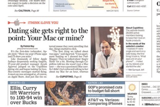 If you’re looking for the “Apple of your eye” then the San Jose Mercury News has the perfect dating site for you. Called Cupidtino, it’s a site exclusively for Mac lovers started by a 31-year-old app designer who says he was inspired by a PC-loving girlfriend. A fight prompted by her unenthusiastic reaction to a new iPad led him to an in-the-shower realization: “I realized if I were single and went on a date today, the first thing I’d ask is, ‘What apps are on your phone?’ ‘Angry Bird’? They have a lot of free time. Amex? They’re making sure their finances are in order. I rolled up my sleeves and started the site.” It’s free to join and only costs $4.79 a month to receive messages from other users. Why $4.79? Because that’s the price of a venti mocha at Starbucks in Cupertino, Apple’s hometown.