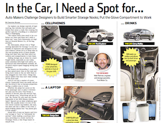 The search is on for a better cup holder, says the Wall Street Journal this morning. Designers say the challenges of making car storage that fits the needs of modern life are growing with each new advance in technology. Though customers demand the perfect place for their cell phones and handbags, it can be difficult to carve out especially faced with the growing tangle of wires needed to power high-tech safety and entertainment systems. Still, there are some noteworthy advances on the market, like Chrysler’s tablet-sized glove box, and the mesh water bottle holder in every Jeep Wrangler.