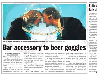 Now, you can just wear a fishbowl instead of living in one every time you go to the pub. A Scottish designer has come up with a way to accessorize beer goggles says the New York Daily News: speech bubbles. Yes, that’s right. The woman says she was inspired not by Get Smart’s “Cone of Silence,” but by the age-old dilemma of trying to have a conversation while in a loud bar. The “Social Spheres” come in two sizes, says the UK’s Daily Mail, one for individuals (I guess if you want to talk to yourself) and one for couples.