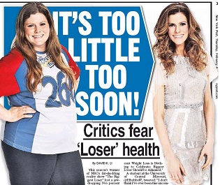 This season’s Biggest Loser Rachel Frederickson’s dramatic weight loss has some people wondering whether she lost too much weight too quickly. Frederickson went from 260 pounds to 105, losing nearly 60% of her body weight. A former competitive swimmer, Frederickson says she rediscovered her athletic body.