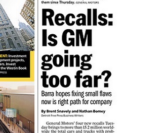 The Detroit Free Press wonders if General Motors is going overboard with recalls in the wake of its massive ignition switch recall controversy. The automaker has issued 29 recalls so far this year - covering more than 15 million vehicles worldwide. The paper points out other automakers have been recalling cars at a greater rate than usual.