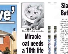 Jack the cat has been found. It only took American Airlines two months to find the cat, who went missing from a baggage drop-off at JFK. He fell out of the ceiling tiles yesterday in Customs room at the airport.