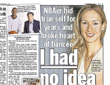 The New York Daily News says Jason Collins’ announcement that he’s gay was an a-ha moment for his former fiancé. Carolyn Moos, who Collins broke it off with in 2009 after an eight-year relationship, says she had no idea he was gay until earlier this week. Moos, who played college ball at Stanford like Collins, says despite her surprise, she’s not holding a grudge: “I want Jason to be happy for a lifetime and stay true to who he really is, inside and out.”