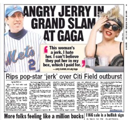 Jerry Seinfeld called in to talk about the Mets on New York sports radio station WFAN. And despite some initial reluctance he slammed Lady Gaga for her inappropriate ballpark behavior last week. The New York Post quotes Seinfeld saying, “I hate her. I can’t believe they put her in my box, which I paid for. You give people the finger and you get upgraded?”