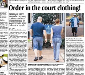 Judges are getting serious about policing fashion crimes says USA Today. A spate of new dress codes around the country have some wondering whether they’ve entered a courtroom or a Catholic school. In Delaware, skirts that fall four inches above the knee are prohibited. A traffic court in California has banned flip flops. And a Michigan man missed his hearing after he was sent home for wearing black jeans. Judges say the new rules are there to remind people that “courts are a place where serious business is conducted.”