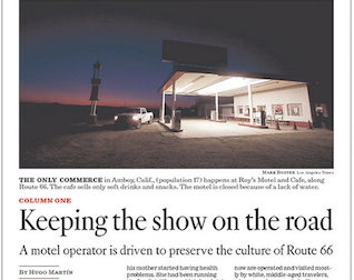 It’s been more than half a century since Route 66 was the main east-west highway in the United States. And now even those traveling the route for nostalgic purposes have dwindled. The Los Angeles Times profiles one motel owner who is tirelessly promoting the culture of Route 66 in an effort to keep the tourists coming, especially young people.
