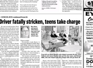 A group of school kids came to the rescue after their bus driver collapsed at the wheel yesterday says the St. Petersburg Times. The bus was carrying K-8 students to school when it “veered onto the sidewalk, over to some grass, then back onto the neighborhood street.” An eighth grader and a seventh grader rushed to the front of the bus and “started pushing buttons.” They figured out how to get the door to open, which enabled a passerby to board the bus and bring it to a stop. They also kept the younger students calm while help arrived.