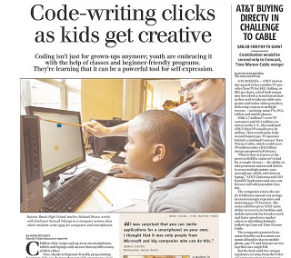 The Seattle Times says beginner-friendly programming languages are helping more and more kids get into computer coding. Kids can create their own games, animation and art. The paper says learning to code isn’t just a valuable job skill, but also a way to help kids think, create and express themselves.