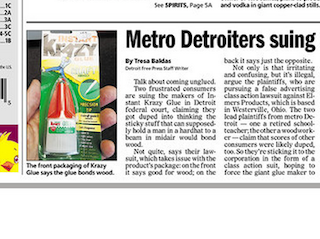 Is it good for wood or not? Anyone who’s ever been confused by the claims on a package of Krazy Glue can now rest a little easier. The Detroit Free-Press says the company is being sued for falsely advertising their product by claiming it’s good for wood on the front of the package and then claiming the opposite on the back. The class action lawsuit is the brainchild of a retired teacher, who says she’s doing it for the principal not for the money.