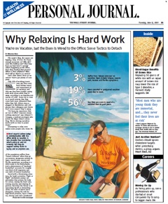 Sometimes, relaxing is hard work. In an age when, even on the beach, we are electronically tethered to the office it can be hard to enjoy a vacation says Melinda Beck of the Wall Street Journal. Only 53 percent of Americans say they come back from vacation feeling rested. And some suffer from something called “leisure sickness, which mimics the withdrawal from steroids. Some say by checking in with the office while they’re out, they are mitigating the stress they’ll feel when they get back. That’s fine says Beck, but she recommends limiting work communication to a specific hour a day while on vacation.