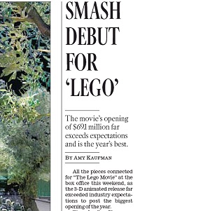 I saw the Lego movie over the weekend - and it was a home run with me and my 9 and 12-year-old daughters who weren’t particularly interested in seeing it. The LA Times says the animated film took in nearly $70 million at the box office over the weekend. Warner Bros. executives say the strong opening all but guarantees a sequel.