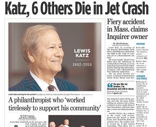 Lewis Katz is remembered in The Philadelphia Inquirer, the paper he won control of just four days before his death in a plane crash over the weekend. The paper says Katz was someone who showed up not just with a check, but with a passion for the causes he became involved in and the ability to add intellectual value and business acumen.