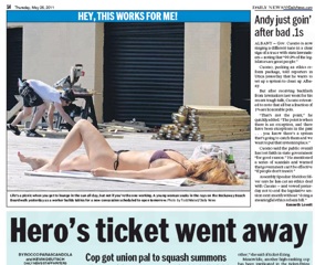 Sometimes, work isn’t that bad. Check out this funny photo the New York Daily News printed today. It’s of a young woman sunbathing in her bikini about five feet from a construction worker putting the final touches on a concession stand at Rockaway Beach. I bet he wasn’t complaining about his assignment yesterday.