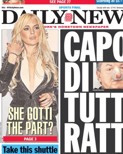Check out this picture of Lohan and the real Victoria Gotti on the cover of the New York Post. I’ve got to say, they do look quite a lot alike. The Post’s Andrea Peyser says Gotti looked like Lohan’s “older, bustier, skinnier sister.”
