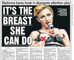 “You don’t have to show your nipples to be interesting, and it doesn’t necessarily mean you’re cutting-edge if you do.” Madonna said that back in February, right before she performed at the Superbowl, It’s curious then, that the pop star decided to whip out her own breast while performing in Turkey over the weekend, a move the New York Post describes as “a pathetic attention grab by an artist with little current relevance.”