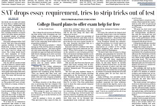 The College Board is making more changes to the SAT exam. Students will no longer be required to write an essay, they won’t be penalized for guessing and the top score will once again be 1600. So-called SAT words will also be dropped. The changes will be implemented in 2016. The Washington Post says the changes are designed to eliminate the tricks of the test.