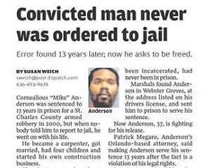 Cornealious “Mike” Anderson was sentenced to 13 years in prison for armed robbery in 2000. But when no one ordered him to jail, he went on with his life, getting married, having four children, filing taxes and starting a construction business. Last year, around the time when he would’ve been due for release, corrections officials noticed a clerical error and he was finally sent to prison. Now his attorney is fighting for his release.