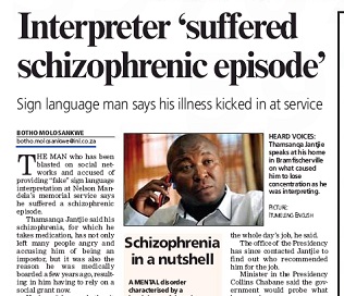 Mandela Interpreter Claims Schizophrenic Episode