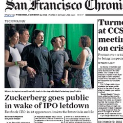 Mark Zuckerberg sat down to talk about Facebook’s woes in San Francisco yesterday, reports the Chronicle. It was his first public address since taking his company public earlier this year. Zuckerberg told the crowd that Facebook’s shoddy stock performance has “undermined staff morale” but that they are looking ahead and see a future in mobile. He blamed Facebook’s stumble on a dependence on HTML5 apps for mobile devices instead of writing code specifically for mobile operating systems.