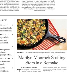 Marilyn Monroe was probably best-known for how she looked stuffed into a dress. But the New York Times says she also made a good stuffing for Thanksgiving. The Times recreates her recipe from Monroe’s hand-written notes, which were recently published in a new book. In the top left-hand corner is her secret and an important instruction for bombshells-in-training: no garlic.
