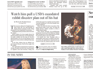 Pulling a rabbit out of a hat isn’t as easy as it looks. For one thing, the USDA requires magicians to have a license for any animal they pull out of a hat, or a shoe, or a basket. The agency now also requires a “disaster plan” for said rabbit, explaining how it will be saved in the event of a fire. Or flood. Or hurricane, ice storm or air conditioning power failure. It’s based on a decades-old law that regulated zoos and circuses. The Washington Post says when it posted this story online, Secretary of Agriculture Tom Vilsack immediately called for the law to be revamped using “common sense.”