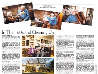 The New York Times visits the home of Lee and Morty Kaufman, where the spry, 91-year-old couple filmed a series of commercials for Swiffer. The Times says the Kaufmans “project an appealing picture of marriage and old age.” The couple spends much of their time in his and hers dens. The Times says Mrs. Kaufman’s den is noticeably cleaner.