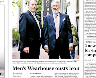 Men’s Wearhouse has ousted its founder and spokesman George Zimmer, reports the LA Times this morning. The company didn’t give a reason for the abrupt decision, but Zimmer wasn’t keeping quiet. He said that the decision was retaliation for expressing concern to the board “about the direction the company is currently heading.” The Times says Twitter users aren’t keeping quiet either, suggesting that Jonathan Goldsmith, the actor who plays Dos Equis’ Most Interesting Man in the World, is a dead ringer for Zimmer and an obvious replacement.