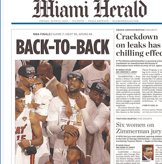 The Miami Heat have done it again. Pulling off their second consecutive NBA title with a 95-88 win over San Antonio, Miami Herald columnist Linda Robertson singles out Dwyane Wade who she says “conceived the Big 3, coaxed it into existence and steered it through doubt and derision.” Wade was not only here for the Heat’s most recent championships but was here back in 2006 when they won their first. Robinson writes: “When it mattered most, Wade was serene and supreme. He showed his teammates the way by finding a way.”