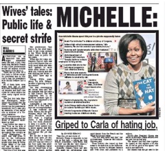 According to a new book, Michelle Obama can’t stand being First Lady. During a private conversation, the New York Post says Obama revealed to her French counterpart, Carla Bruni, that her life in the White House was “hell.” The tidbit is included in a new book about Bruni, called “Carla And The Ambitious.” Spokespeople for both women have denied the conversation took place. The book also claims that Bruni has some nasty things to say about Lady Di and has accused French government officials of trying to kill her husband, Nicolas Sarkozy.