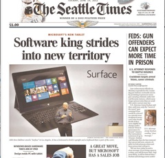 Microsoft unveiled its challenge to the iPad yesterday. Called Surface, the tablet-cum-laptop signifies a new direction for the company, which has never made a Windows device under the Microsoft name says the Seattle Times. Tech columnist Brier Dudley says it’s a great move for the software giant but now begins the real challenge: they’ve got to sell it.