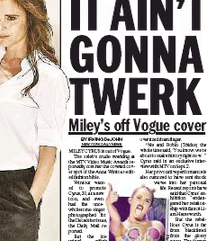 “It Ain’t Gonna Twerk” is the headline in the New York Daily News this morning. Vogue editor-in-chief Anna Wintour apparently pulled Miley Cyrus from cover of the December issue after her less-than-subtle performance at the MTV Video Music Awards. But it’s not all bad news for Cyrus—she recently appeared for a spread in Harper’s Bazaar, posing in dozens of couture outfits.