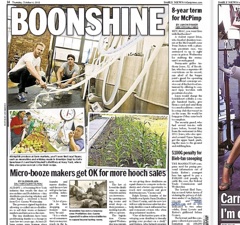 Tomatoes, green beans, corn, a bottle of moonshine. New Yorkers, this could be your farmers market list, says the Daily News. Yesterday Gov. Cuomo OKed the sale of homemade hooch at farmers markets and fairs around the state. The “mom-and-pop moonshiners” proliferated after a change to state law back in 2010, which created licenses for “farm distilleries.”