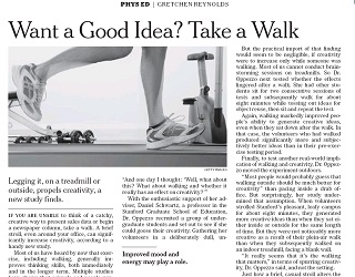 If you’re stuck in a creative rut, you might do well to get up and take a stroll. A new study finds going for a walk, even a short one around the office, can significantly increase creativity. The New York Times says this is one of the first studies to actually provide data to the idea that exercise spurs creativity. One theory is that walking may help the brain break through some of its filters.