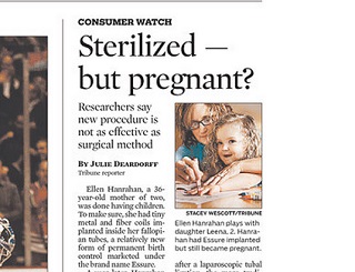 The Chicago Tribune details a new study on the effectiveness of a new permanent birth control method for women marketed under the brand name Essure. Researchers say that nearly 10% of women who undergo the sterilization procedure could still become pregnant. That’s nearly four times the risk of pregnancy that comes after the more traditional method of a laparoscopic tubal ligation.